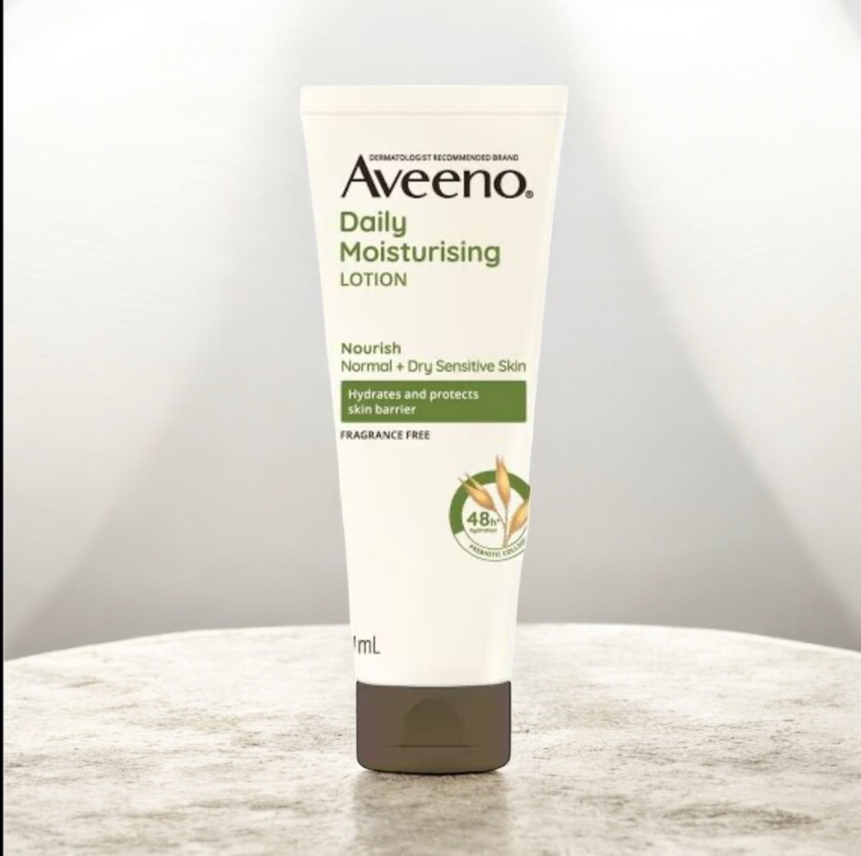 Aveeno® Daily Moisturizing Lotion (2.5 oz tube) is a solution for people with dry, flaky or irritated skin. Aveeno lotion is specially formulated to rehydrate skin to make it better, smoother, softer and healthier than previous lotions. Aveeno Active Naturals works by locking in moisture to improve skin wellness in just one day