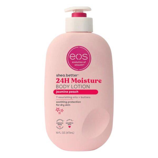 Hydration: EOS Jasmine Peach Body Lotion deeply moisturizes your skin, thanks to its blend of nourishing natural oils and shea butter. Say goodbye to dry, rough skin and hello to silky-smooth, hydrated skin all day long.