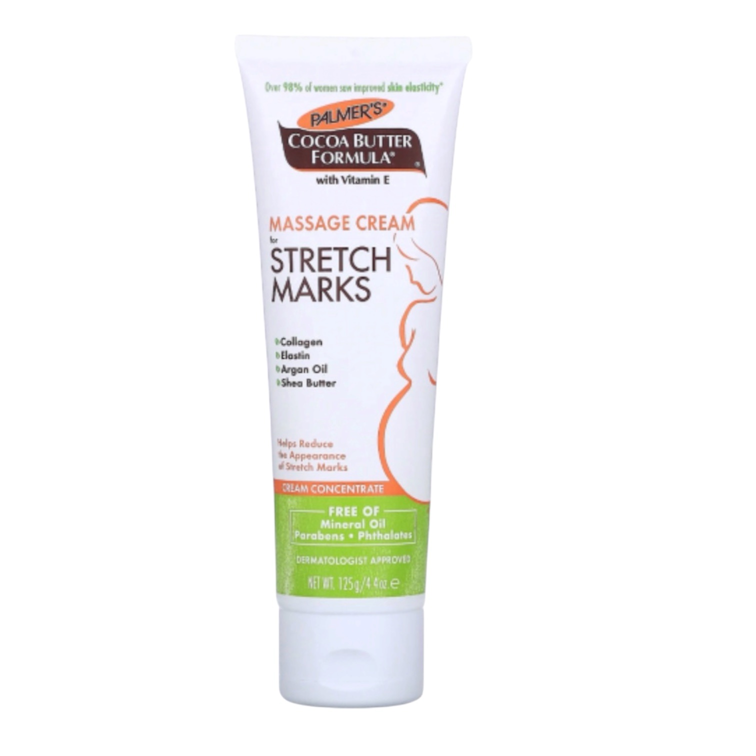 Palmer’s Cocoa Butter Formula Massage Cream helps visibly improve skin elasticity and the appearance of stretch marks. Pure Cocoa Butter and Shea Butter, Natural Oils, Collagen, Elastin and Lutein keep skin moisturized and supple for 48 hours allowing skin to stretch more easily. Widely recommended for stretch marks during and after pregnancy or weight fluctuation. This cream concentrate formula is ideal for stretch mark prone areas such as tummy, hips, thighs and bust.